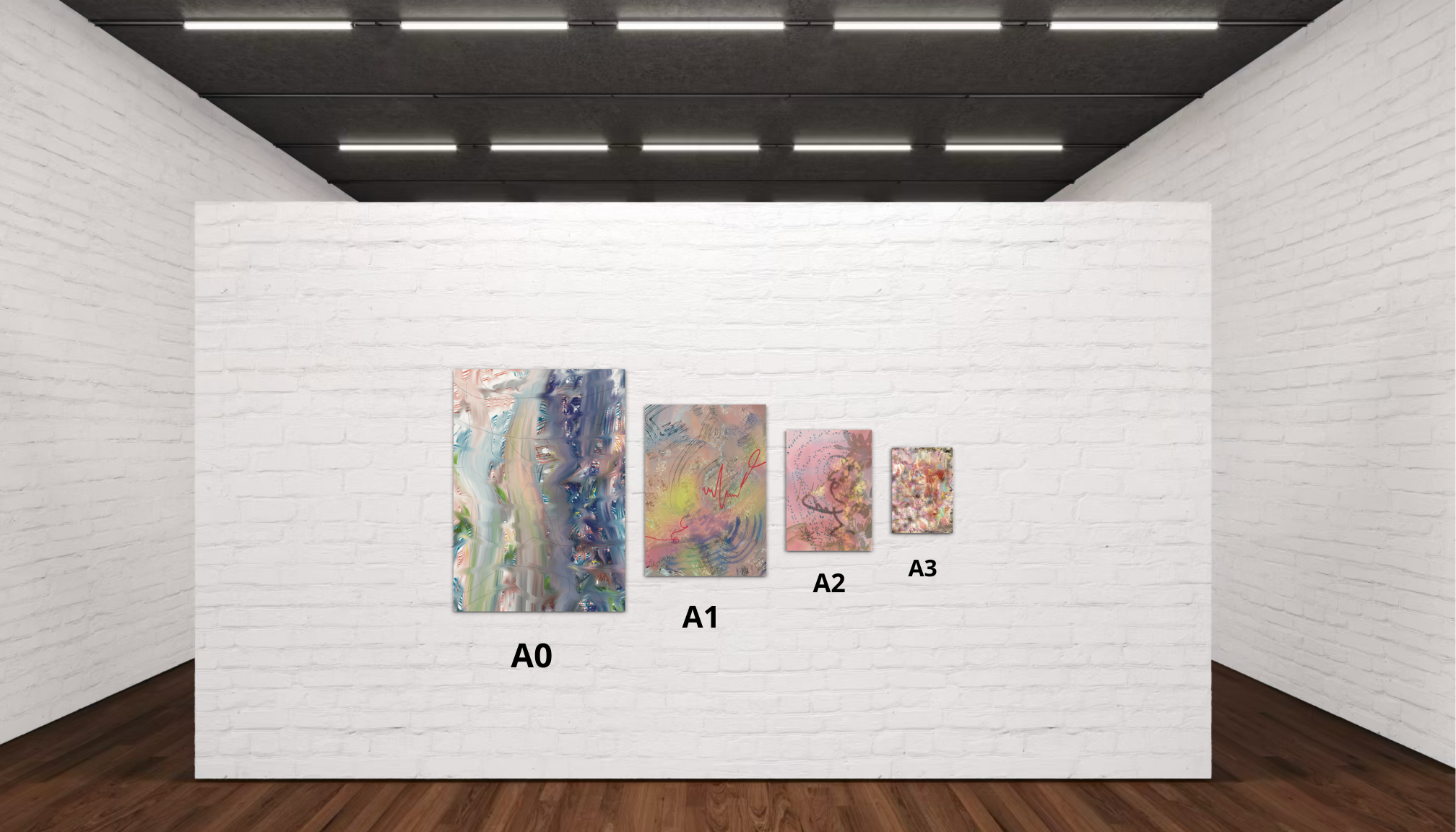 Perfect for intimate spaces, our A3 artwork measures 29.7 x 42.0 cm. Printed on high-quality paper, this vibrant piece is ideal for adding a touch of creativity to desks, bookshelves, or smaller walls. Please note that the listed price does not cover frame and shipping costs.